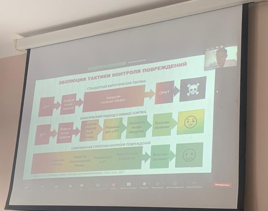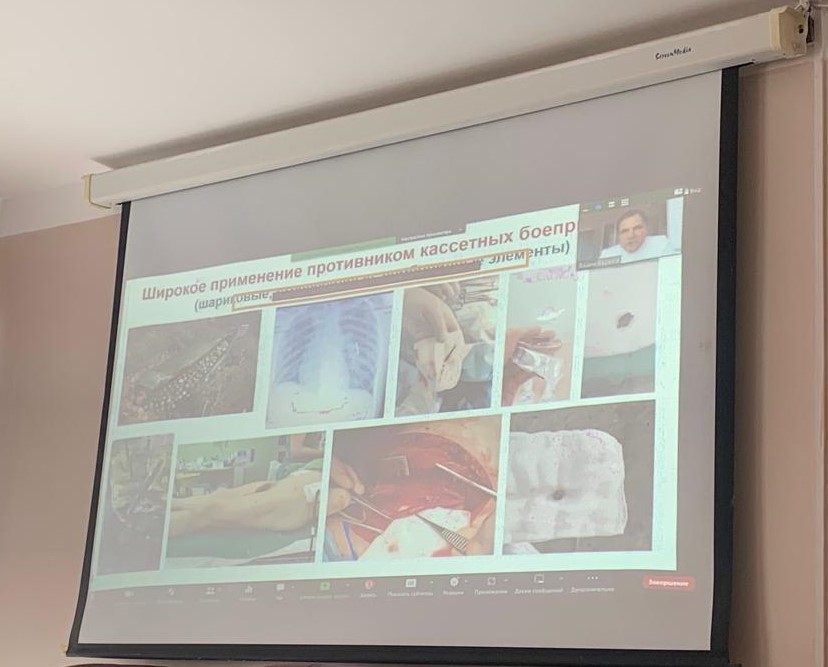 С учетом проведения специальной военной операции и того, что Курские хирурги работают в приграничных районах, руководство общества организовало телемост с военно-медицинской академией имени С.М. Кирова МО РФ. На базе ОБУЗ "Курская областная многопрофильная больница" прошло внеплановое заседание Курской региональной общественной организации "Научно-практическое общество хирургов", которое было организовано по инициативе председателя, ректора КГМУ, профессора Виктора Анатольевича Лазаренко и посвящено: "Современная боевая хирургическая патология и принципы оказания помощи в современной войне". Врачам хирургам были прочитаны 4 лекции, передовыми сотрудниками кафедры, чьи золотые руки в настоящий момент спасают жизни нашим бойцам и восстанавливают не только их физическое здоровье, но и врачуют их души.
